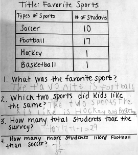 Third-grade students answer questions about a data set and draw a bar graph to represent the data set. This assignment gives students a chance to model a real-world situation (students’ favorite sports) mathematically, but it is only partially aligned with a third-grade standard and does not connect to any of the main topics that students should be learning about in third grade.