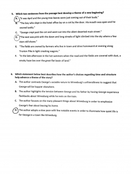 Ninth-grade students read “Departure,” an excerpt from Sherwood Anderson’s "Winesburg, Ohio," then answer multiple-choice and writing-based questions about the text. This assignment exposes students to a noteworthy literary text and the questions build students’ understanding of it. Students also analyze the text in a written response.
