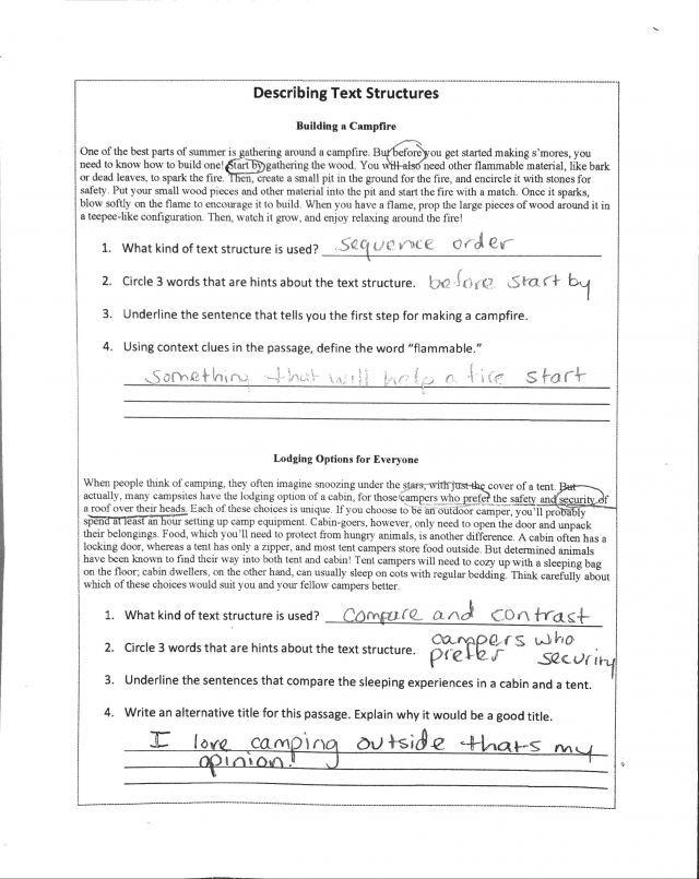 Fourth-grade students read two short passages, then answer a series of questions about the structure of each text. The texts, which are commissioned for educational purposes, are not grade-appropriate or worthy of student time and attention, and the associated questions do not ask students to explore the craft and structure of the texts, or to build a deep understanding of the texts.